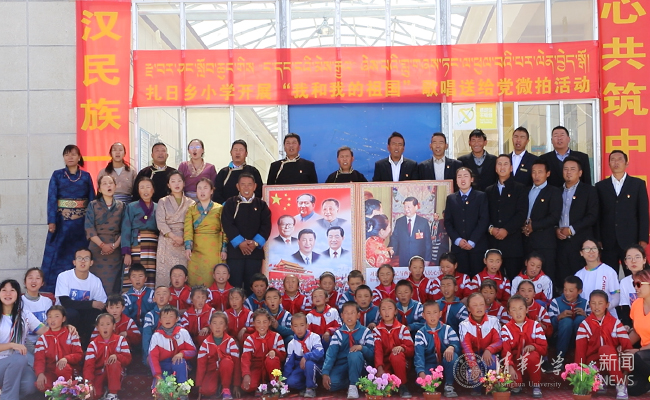 值得一提的是,扎日乡完全小学还特意开展了“我和我的祖国”歌唱送给党微拍活动。支队队员与全校的老师同学聚在一起,共同唱响《我和我的祖国》。在动人的旋律中,大家感受到了不同民族之间共通的爱国情感,进一步体会到了“藏汉民族一家亲”的含义。