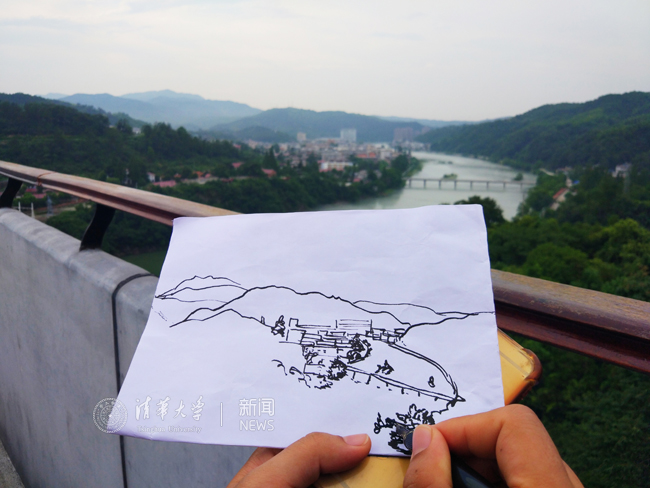 实践队员在调研采风期间用画笔记录金寨历史、山水、人文 蔡艳琦 摄