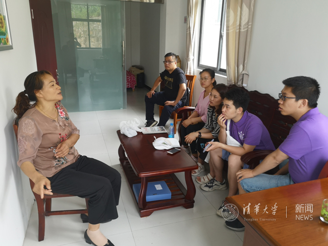 大湾村党总支书记何家枝(左一)为实践队员们介绍村扶贫工作的开展情况 王昱森 摄