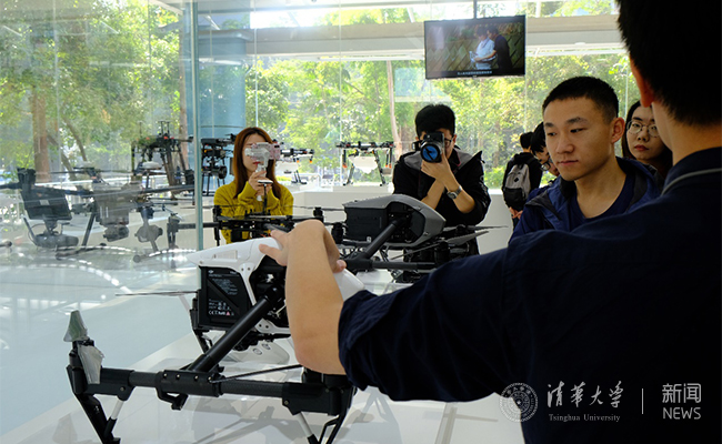 在大疆创新,招聘专员苏一帆带领支队成员参观了解了公司各代无人机的发展历程,观看了无人机的室内飞行展示。大疆创新专注于无人机系统、手持影像系统与机器人教育领域。支队成员看到,大疆无人机的飞行操作不但可以通过遥控控制,还可以通过人体动作控制无人机的起飞、降落、盘旋,甚至航拍。工作人员讲解道:“实现人体动作识别操控可以极大降低无人机操作的专业性要求,使每个人都能在室内室外轻松操作无人机。”