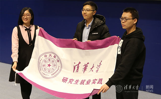 赵璞希望研究生社会实践要从“上大舞台,见大世面”转变到“做大贡献”,鼓励大家不仅要发现问题,还要有解决问题的能力,做出有意义的实践成果,并以杰出前辈为例,鼓励大家做业务精湛、敢于担当的清华人。最后,赵璞为2019年寒假就业实践支队代表授旗。