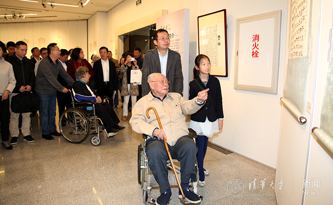 开展仪式后,马识途学长和来宾们来到书法展厅,共同欣赏展出的150幅书法作品。