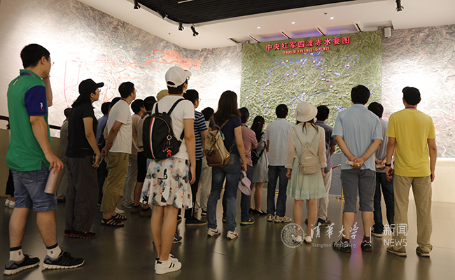 来到坐落在土城镇中的四渡赤水纪念馆,老师们在地形图前追随当年红军在习水县境内历时两个月的回旋路程,体验青杠坡战斗的紧张凶险。进而下到赤水河畔,掬起一把滚滚北上的冰凉河水,在土城渡口纪念碑前凭吊一渡赤水时的艰苦危急、四渡赤水中的波澜壮阔。行走在砂砾高高低低的赤水河边,大家一面丈量河面、一面品读毛泽东同志平生的“得意之笔”,纷纷感叹于老一辈革命家高超的军事指挥艺术,聆听湍急的赤水诉说这里就是红军变被动为主动、进而推动中国革命走上胜利的新起点。工物系青年教师续本达说:“实地的历史体验依旧是震撼的,没有观看实地的文物,就难以全面思考四渡赤水前后党中央和红军的痛苦抉择和我党初创时期筚路蓝缕的艰辛。”