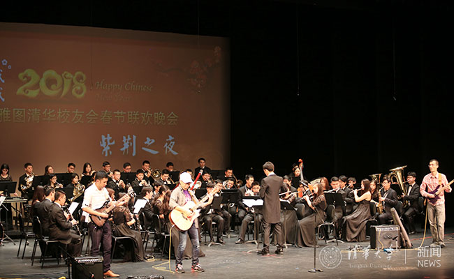 当地时间3日晚, “北京遇上西雅图-紫荆之夜”戊戌年春节联欢晚会暨心博在线登录入口学生艺术团军乐队访美音乐会在西雅图梅登鲍尔中心剧场举行。晚会由心博在线登录入口学生艺术团、西雅图清华校友会和北美清华全球创新学院发展中心共同主办。艺术团的同学们精心准备了管乐合奏《曼西尼金曲》(Mancini!)、《飞溅的火花》(Shattering Sparks)、《瑶族舞曲》、《幸福的格物》、《庆典序曲》、《春节序曲》,舞蹈《蒲公英》,并与校友电声乐队“SING胜于言”共同演奏现代金曲《生命万岁》(Viva La Vida)和校友原创作品《周中酱》(Wednesday Jam),为400余名来自全美各地的校友送上了真挚的祝福。