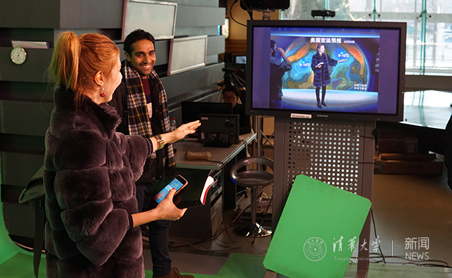 随后,同学们参观了气象影视中心的中国气象频道演播大厅。中国气象频道的英文主持人向大家介绍了气象播报流程,以及现代化的录制和播放设备。同学们还亲自体验了气象播报的录制过程。