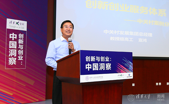 《创新与创业:中国洞察》课程是一门2学分32学时的全校性选修课程,也是研究生院研究生学术与职业素养课程之一。课程由清华经管学院、清华创新中心与中关村发展集团于2017年秋季学期共同设计并组织开设,共含8节课及4个辅助教学单元。课程内容包括中关村园区发展历程介绍、企业参访、创业马拉松闭门训练营、线下导师辅导、期终答辩五个部分。选课学生约120名,来自包括经管学院、信息科学技术学院、机械工程学院、美术学院在内的十多个清华院系。