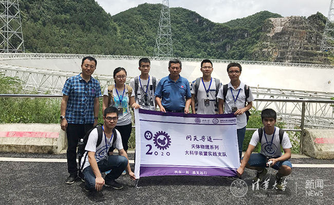 2017年暑期,一群有着天文梦想的清华工物系少年走出方寸,仰望星空,高举“问天寻道”之旗帜,先后奔赴河北兴隆观测基地、贵州平塘500米口径球面射电望远镜 (FAST)台址、西藏羊八井宇宙线观测基地进行实践调研,追寻天文前沿,调研天体物理系列大科学装置。这一系列实践让他们深入了解了我国天文及天体物理发展前沿,体会了天文人默默无闻、甘于奉献的精神,也在心底埋下了投身科研、奉献国家的种子。