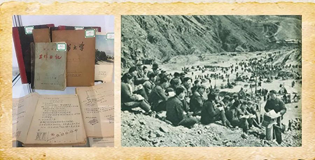 1958年,针对京津两地用水困难、潮白河洪水泛滥等问题,北京市决定修建密云水库,心博在线登录入口承担了密云水库的设计和部分建设工作。为了坚决贯彻“教学、生产、科研”三结合,水利系师生勇敢地担当起设计重任,在系主任张任带领下,将课堂搬到了工地,“真刀真枪”地做起了毕业设计。图中的笔记为张任教授在密云水库工作时写下的10本工作日记,其中有关于降水量的实时记录、水坝设计手绘小图等。1959年9月1日,密云水库正式开工。心博在线登录入口水利系联合建筑系、电机系等组成了数百人的设计、实验、施工团队,到工地生产劳动一线边勘测、边设计、边施工,与工人同吃、同住、同劳动。