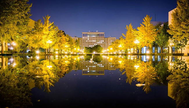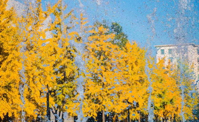 更庄重:改为镜面水池后,春夏秋三季水池形成镜面水膜,可映出天空、主楼、银杏大道的静谧壮观,配合间歇的小型喷涌泉,形成动静相宜的景观;冬季无水时,深色池台本身也能成为一道庄重、大气、简洁的景观。