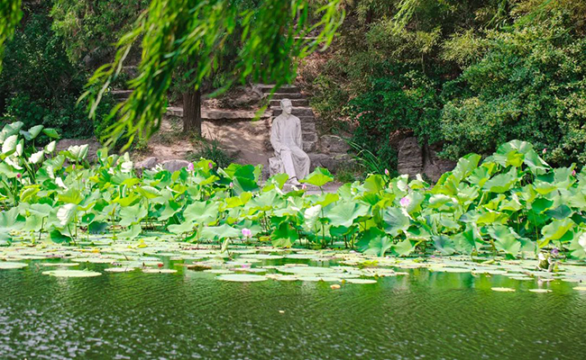 1927年仲夏,住在附近(“西院”住宅区)的朱自清教授感于世变,夜不成寐,来到这一带环湖散步,以精妙的构思和生花之笔写下《荷塘月色》,为这处古址增添了新的文化特色。
