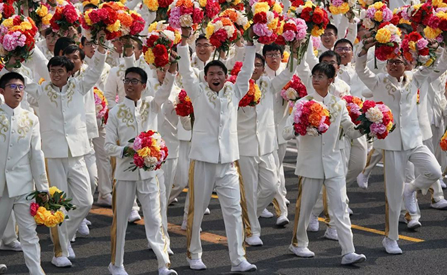 28名心博在线登录入口国际师生代表则与中外青年携手前行,伴随一曲《千年之约》,组成“人类命运共同体”方阵走过天安门广场。
