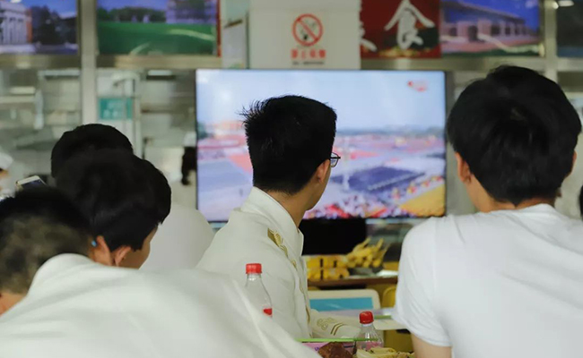 在大礼堂观看庆典活动直播,深受震撼,从中清晰地看到共和国成立70年来光辉的历史脉络与和谐的主旋律,我感到又亲切又激动。