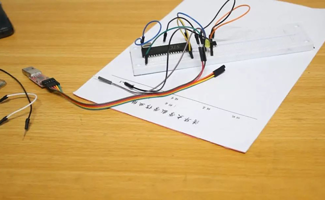 1.利用面包板、导线与可编程芯片搭建国旗上小灯闪烁电路