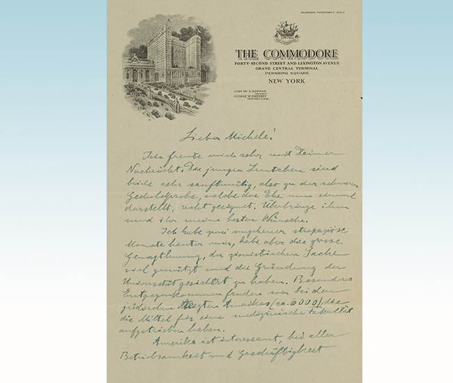 爱因斯坦1921年从纽约寄给贝索的信