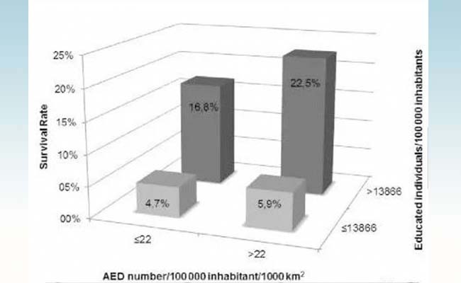若能够在发生猝死时取得 AED,缩减了过去等待医护人员到达才施以电击除颤的时间差,将极大提高心源性猝死(SCD)抢救成功率。