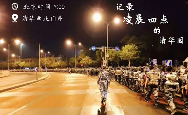 你见过凌晨4点的清华园吗?我见过。此时的我一边揉腿一边在电脑前疯狂工作,因为这一天对于我、对于2017届的清华新生们来说都是很特殊的一天。今天是7字班新生军训拉练的日子。
