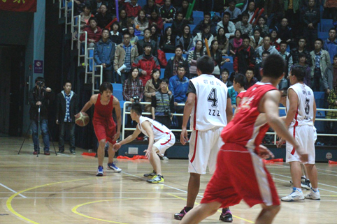 学生篮球协会承办的“马约翰杯”篮球5对5比赛男子组决赛现场。