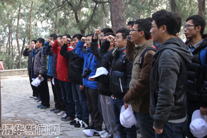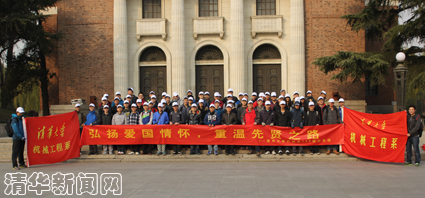 活动当天,参加活动的同学在大礼堂前集合。出发前,机械系系党委书记吕志刚发言。他表示,79年前中国正处于生死存亡的时候,在共产党的领导下,满怀爱国情怀的学生为国家民族的命运奔走呐喊。79年后的今天,新中国的发展仍然面临着来种种挑战,作为中国未来的主人,作为清华学子,有必要也必须要弘扬“一二•九”精神,为中华民族的伟大复兴做出自己的贡献。