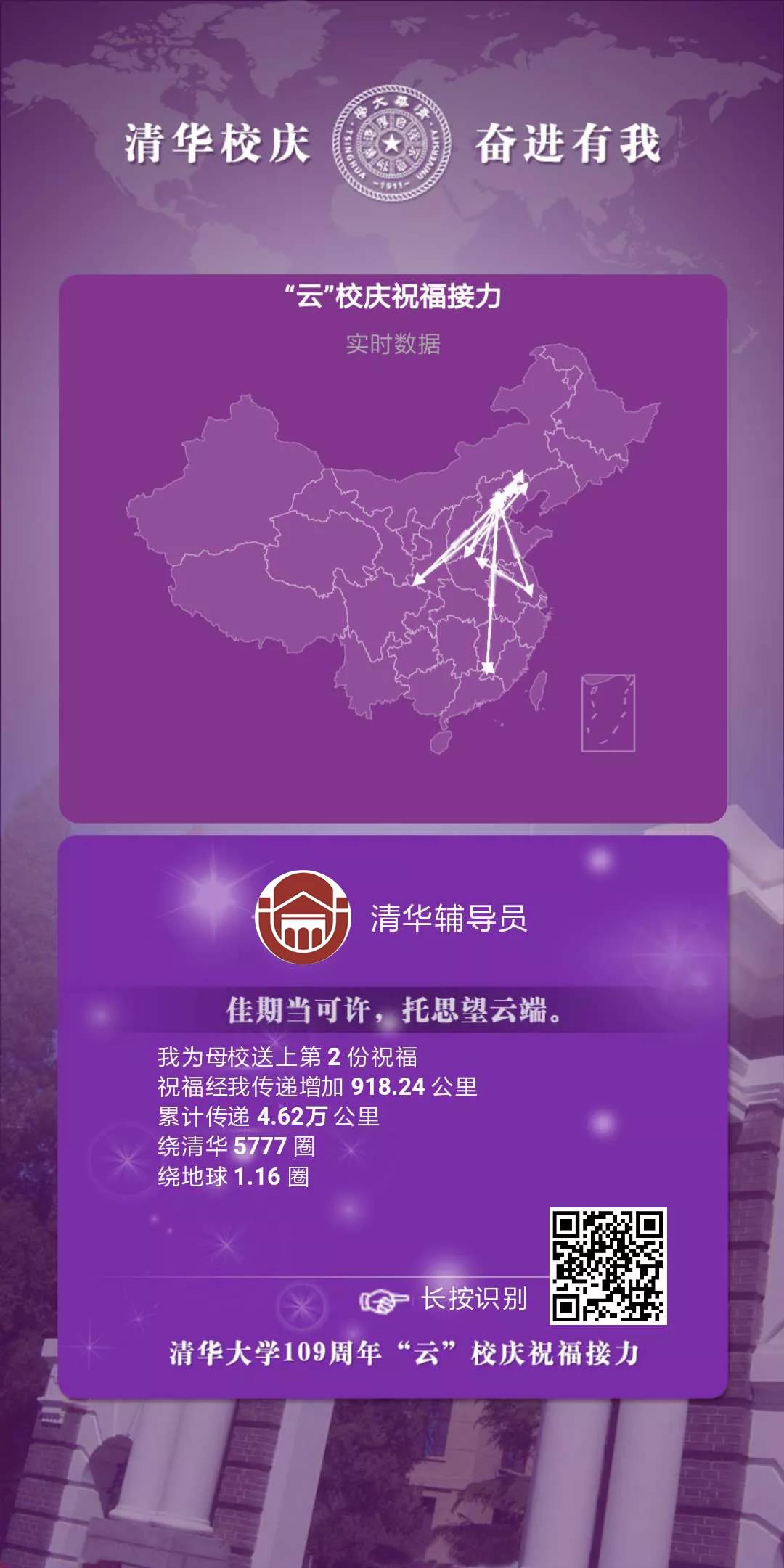 云端相聚,奋进传递祝福,凝聚拳拳之心。为此,辅导员工作室策划了“‘云’校庆祝福接力”活动,将美好的期盼、庄严的承诺化作清华人接力传递的祝福。我们坚信,这蕴含清华人共同的精神气质的祝福终将在处处照亮疫情的阴霾!