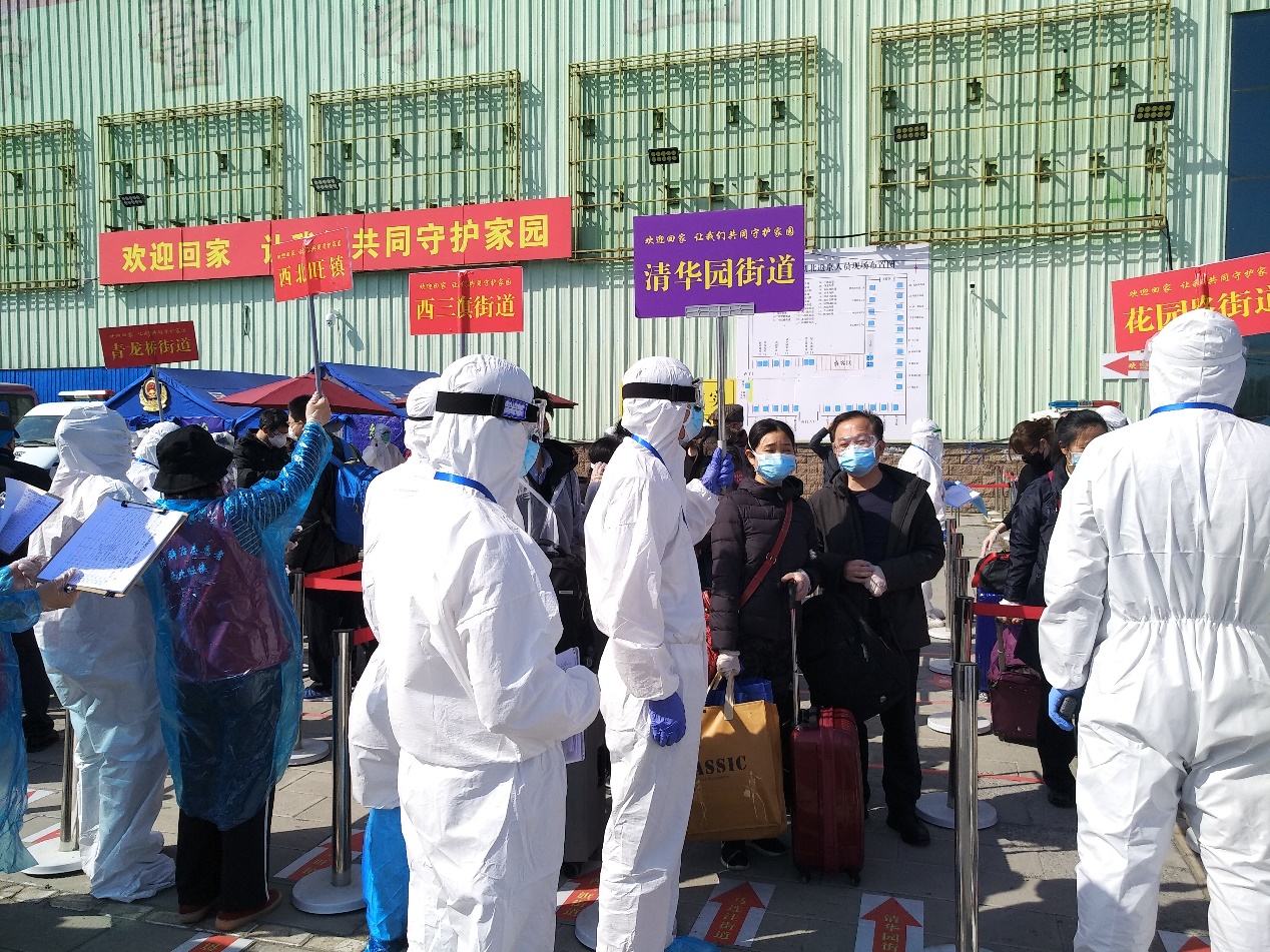 四月初,北京市开始组织在鄂人员集中返京。当收到党支部通知机关党委和清华园街道组织了相关志愿活动后,我第一时间向组织报名,希望能到防疫一线贡献自己的力量。经组织安排,4月12日下午,我到海淀区参与在鄂人员返京的分流工作。穿戴好一身的防护设备后,由于不透气,不到几分钟我的全身就被汗水打湿了。在街道办老师的带领下,我们完成了一系列工作:相关信息和手续的登记、核实、查验,人员的分流和行李、衣物的消毒工作,人员返回住所的集中转运工作等。当天清华园街道的返京人员流量并不算密集,整个下午的工作量并不大,但炎热的天气和厚重的防护服对人的意志和体力是极大的消耗,短短的半天时间里我真切地体会到疫情防控工作的不易。