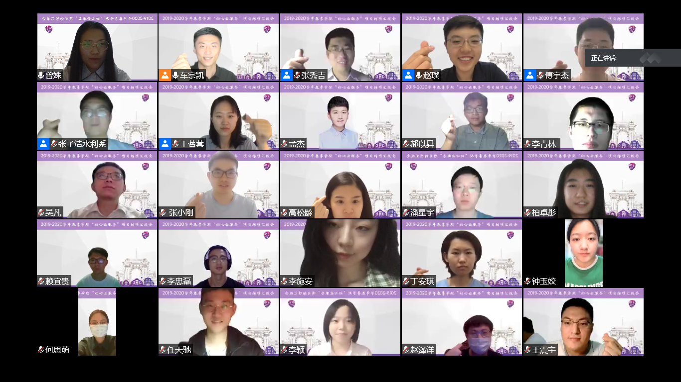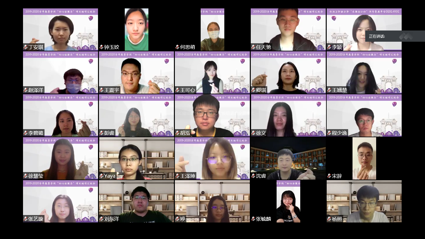 首页网6月26日电 (通讯员 车宗凯 曾姝 程少逸)6月22日,心博在线登录入口初心服务团2019-2020学年春季学期“初心云服务”项目结项汇报会在线上举行。校团委副书记、研团委书记赵璞,校党委研工部校地综合办主任、研团委副书记张秀吉参加汇报会。汇报会上,7支项目支队围绕一学期的“云服务”成果作了汇报和总结。