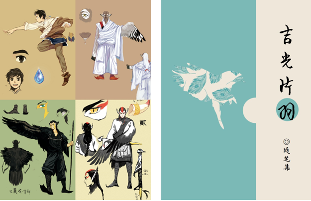 绘本《海心》人设手稿(左) 随笔集《吉光片羽》(右)