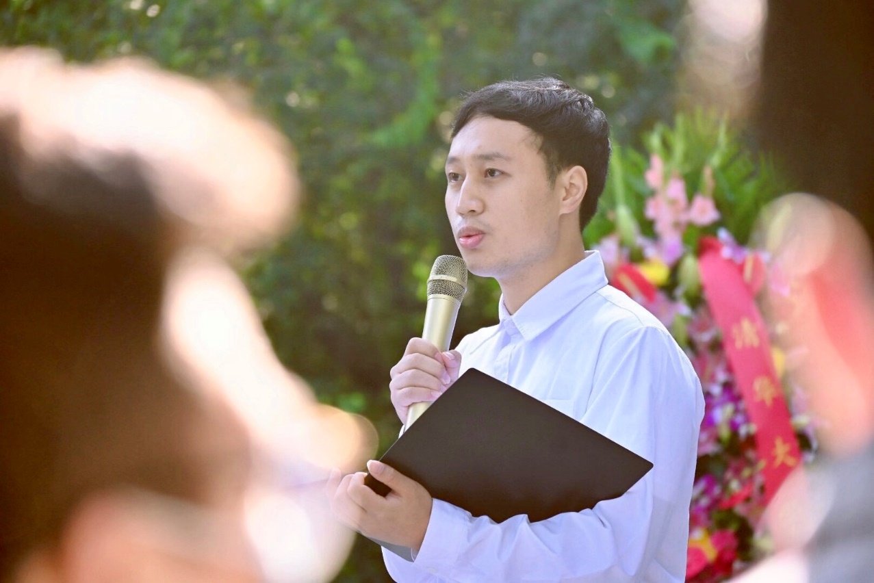 陈根锋在“祖国儿女,清华英烈”纪念碑前回顾了清华先辈们在时局动荡、民族存亡时期,为祖国安危与革命信仰英勇献身的光辉事迹,阐述了这种清华精神在当代清华科研工作者、奔赴基层的清华学子以及清华企业家群体中的传承与发扬,表示新时代青年应当继承清华精神,继续努力拼搏,为中华民族伟大复兴而不懈奋斗。
