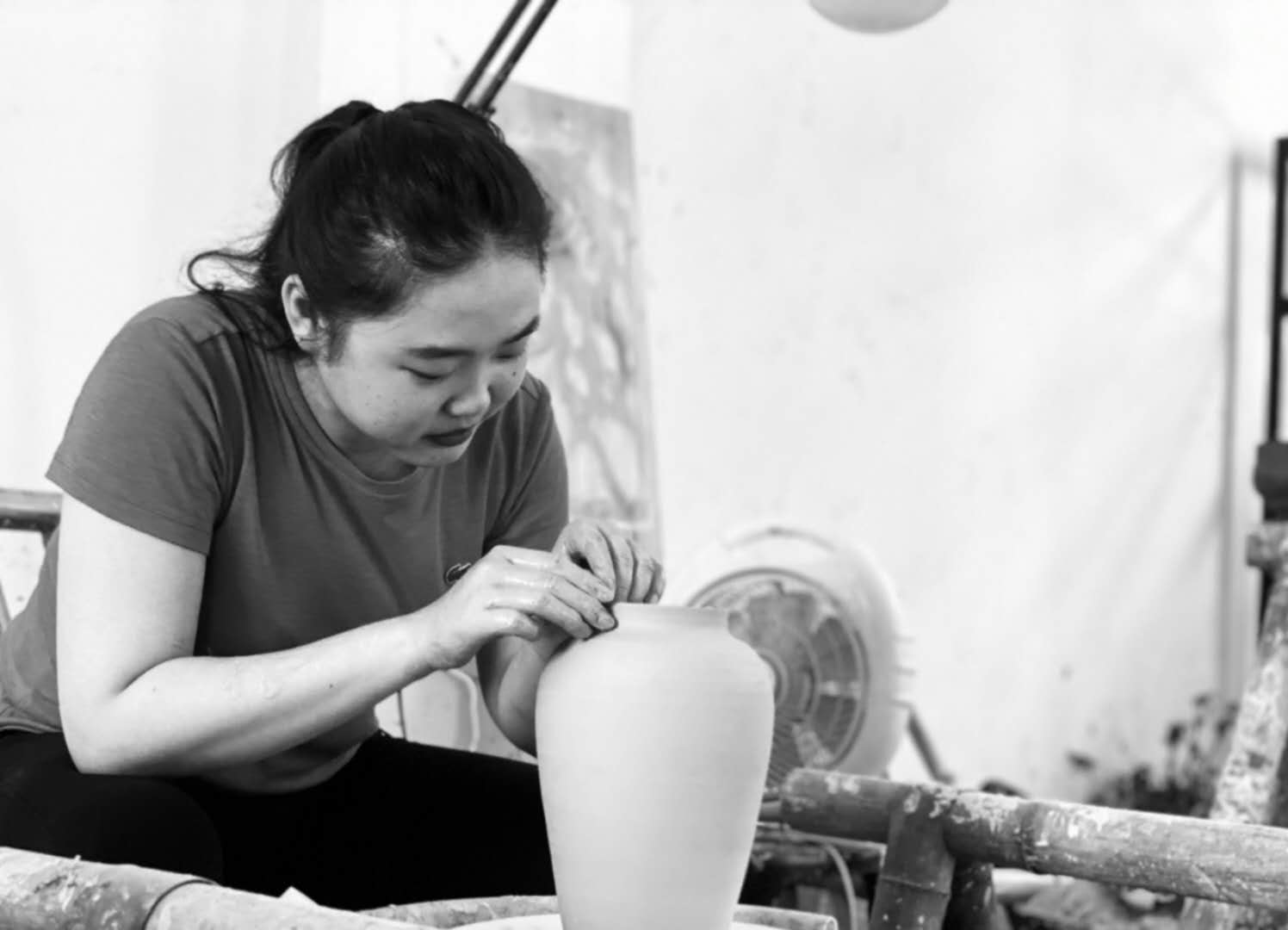 《我很好,你呢》是一套由一百余件陶瓷器物组成的陶瓷装置作品,宋丹杨的灵感来源于今年疫情期间她所感受到的来自个体以及集体的焦虑情绪。通过陶瓷材料本身的脆弱以及易碎感,结合器物形态的异变表现了这种焦虑情绪与她所感受到的不安全感,借用陈列方式的设计表达了焦虑情绪积极转化的过程,从而展现一种积极向上的态度。宋丹杨尝试将陶瓷语言与社会热点问题相结合。