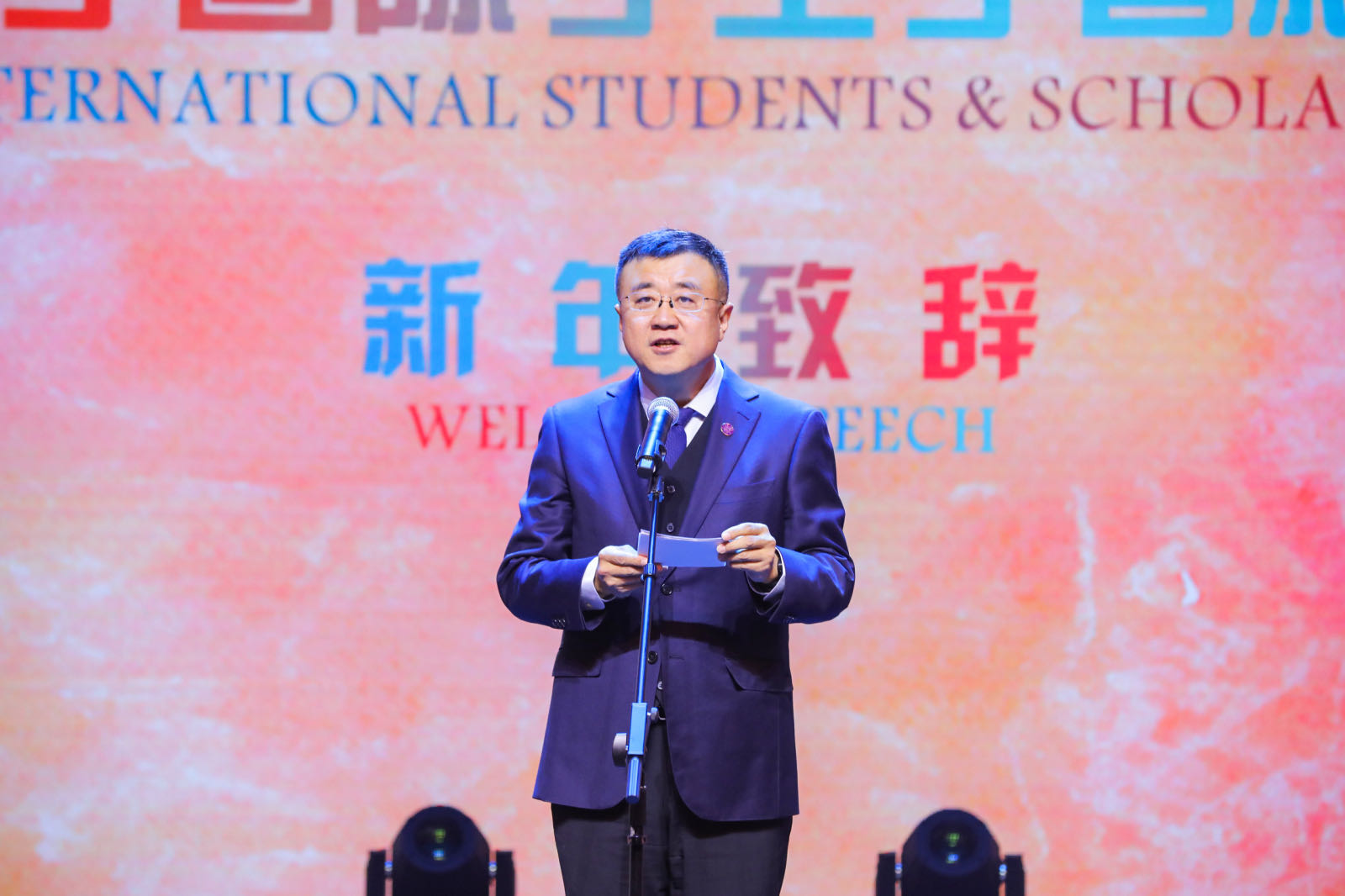 首页网12月18日电(通讯员 刘兆希 记者 田姬熔)12月11日晚,2021国际学生学者新年晚会在蒙民伟音乐厅举办。副校长、教务长杨斌,国际处处长、国际学生学者中心主任郦金梁,教务处处长、副教务长曾嵘,校团委书记张婷及相关部处负责人出席了晚会。
