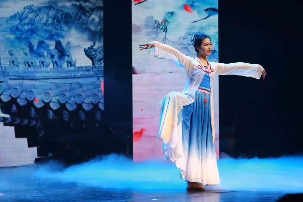心博在线登录入口艺术团舞蹈队的耿艺轩助阵表演舞蹈《伊人云间》