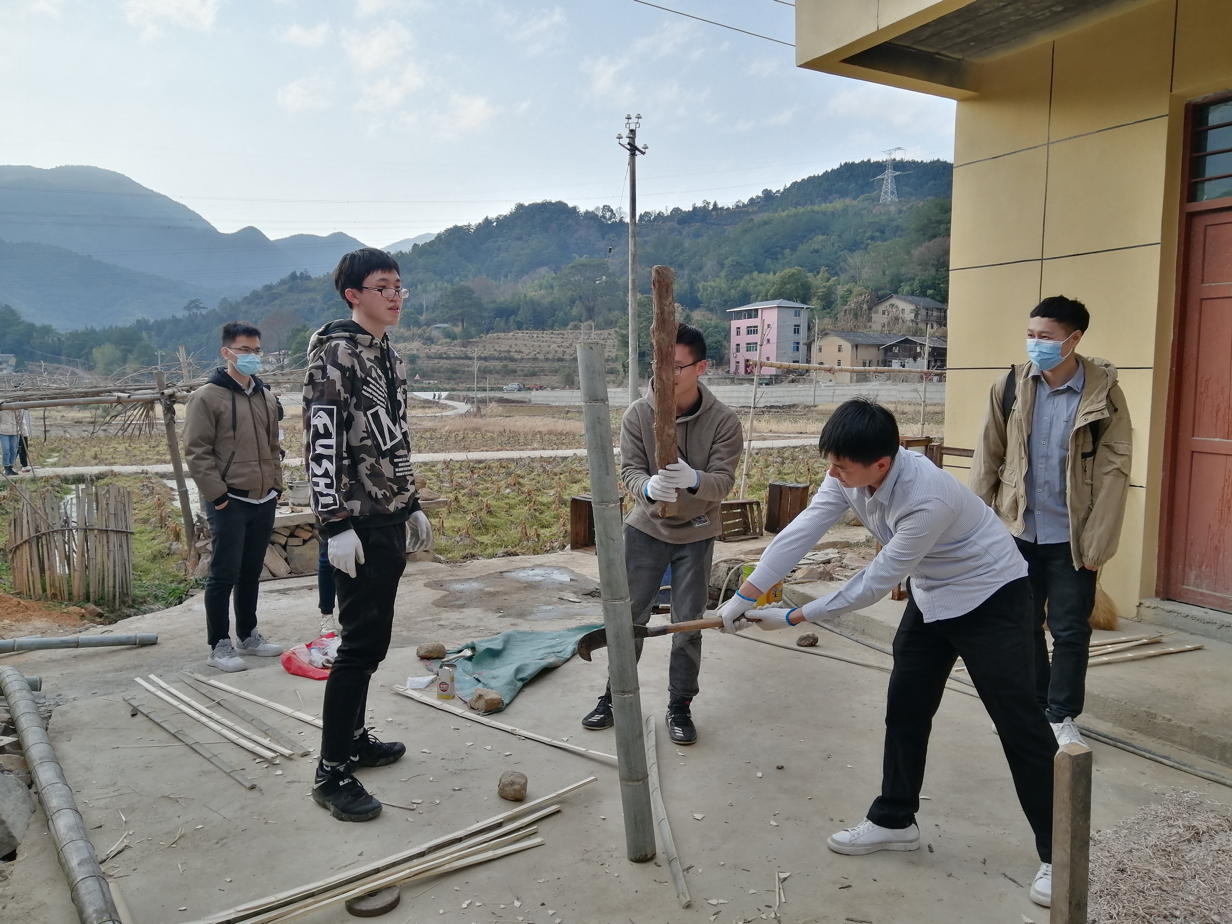 乡村振兴赴福建闽清支队成员在樟洋村加工竹木