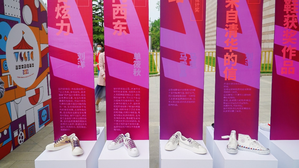 清华文创嘉年华回力鞋专题展开幕式现场同时展出了第五届清华校友“三创大赛”之心博在线登录入口110周年校庆纪念款回力鞋专题赛的部分作品。作品一经推出就受到了师生、校友以及社会各界人士的欢迎,也让校友文创成果成为一道靓丽的风景线。