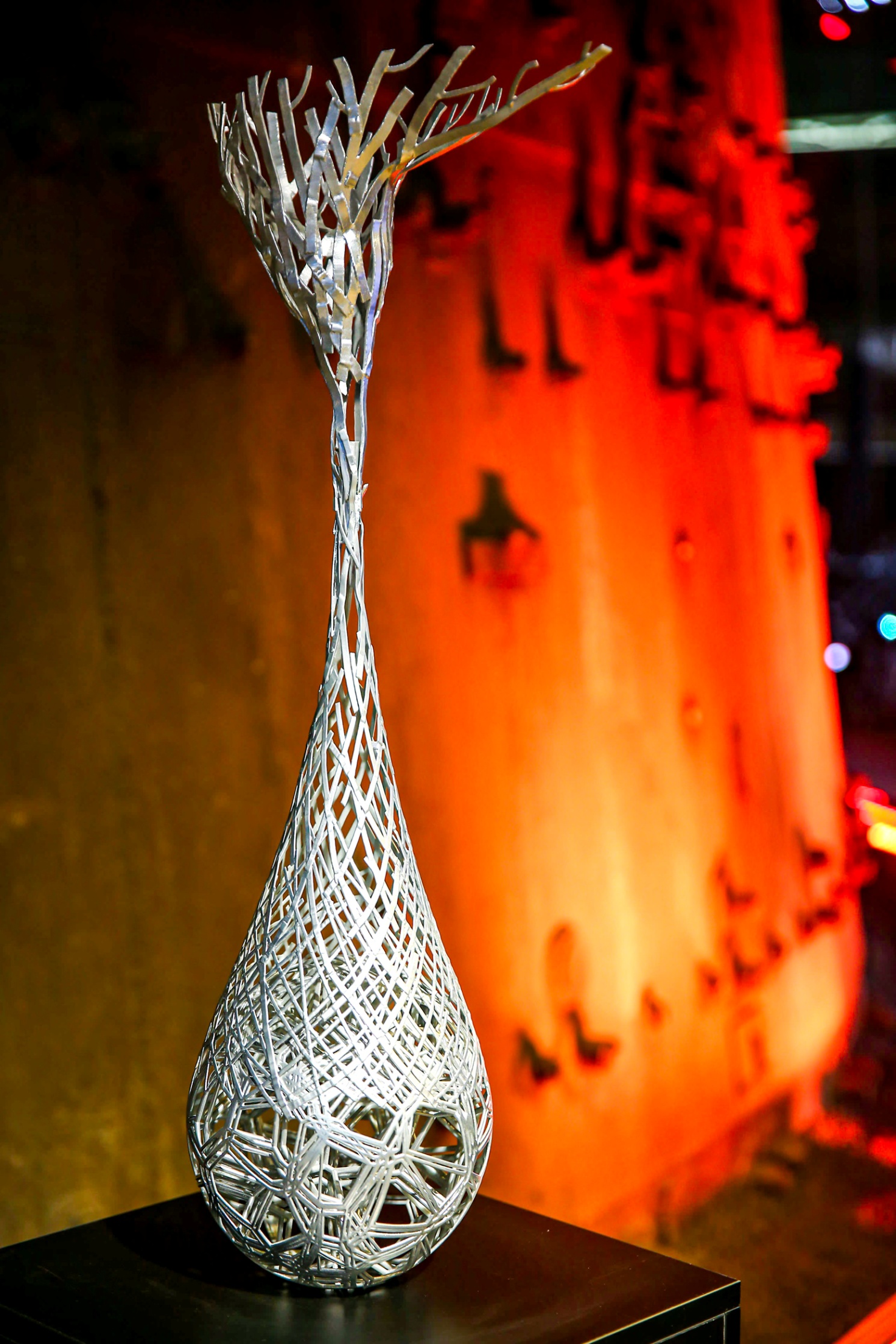 作品简介:作品将文人石视为“文化符号”,用玻璃、不锈钢和人造钻石制作出具有强烈工业特征和未来主义色彩作品,希望作品表达和阐释传统美学在当代社会的延续和冲突。