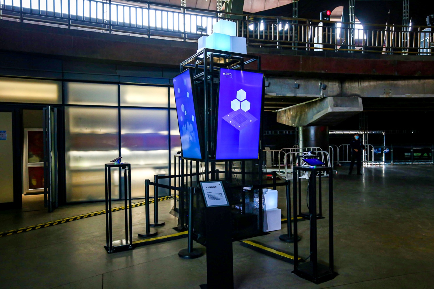 作品简介:在 AI City 的城市接口模块中,观众可以选择四种未来城市的发展模式,由多模态媒体互动组成的交互系统及操作手册帮助观众建立了一套完整的观展体验。