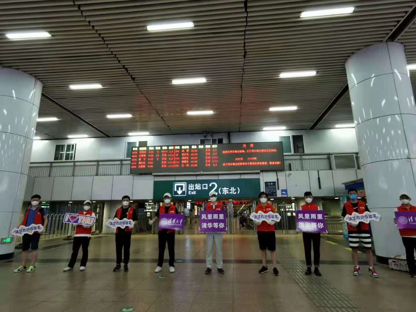 参与毕业生返校北京西站接站志愿活动(左二)