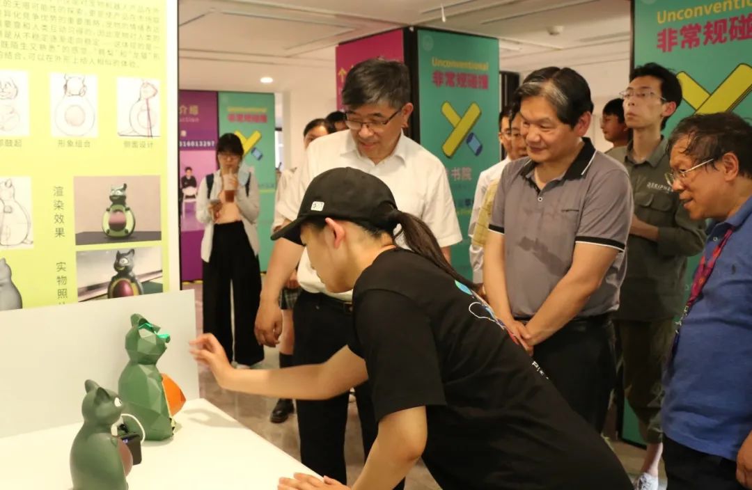 随后,郑力、甘阳、马赛、徐迎庆等共同为展览剪彩。所有嘉宾与师生共同参观了展览。展厅中一件件既有工程巧思,又富有造型美感的作品让大家一次次驻足观看、讨论、互动。