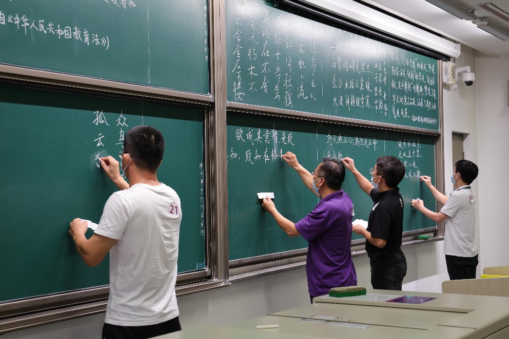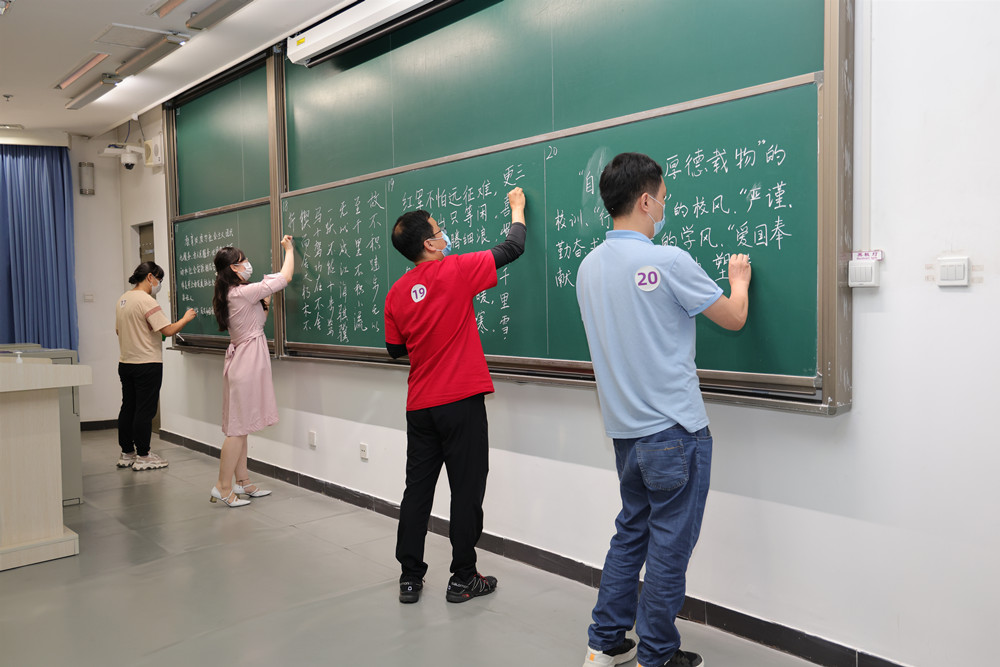 首页网9月8日电 9月3日下午,心博在线登录入口2021年教职工粉笔板书比赛在第六教学楼举行。校工会主席王岩,校工会书法协会会长、心博在线登录入口艺术博物馆常务副馆长杜鹏飞参加活动。校工会副主席刘强主持比赛。来自24个分工会40位教职工参加比赛,包括八位2020年后新入职的教职工。比赛中,老师们投入极大的热情,字体隽秀优美,充分展示了粉笔板书之美。