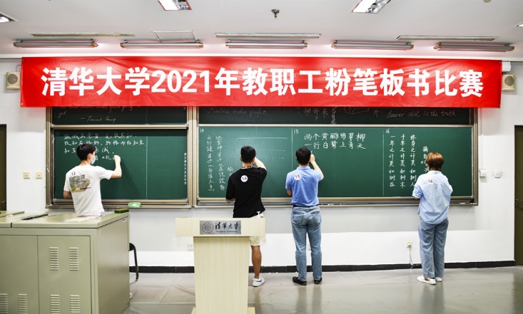 板书比赛日益成为清华立德树人、教书育人的靓丽名片。希望通过粉笔板书比赛,老师们能够以笔会友,以字结缘,在各自的工作岗位上担负起立德树人的根本任务,赓续百年初心,担当教育使命,向世界一流大学建设和全面建成社会主义现代化强国的第二个百年目标继续努力。本次比赛由校工会主办,工会书法协会、剧艺社承办,同时也得到了教务处和学生社区管理中心的支持。