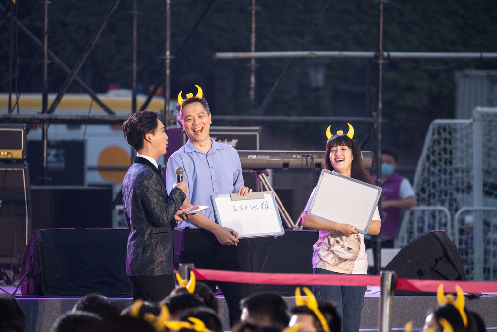 由校友和在校生组成的神思乐队带来的原创歌曲,首先点燃了全场热情。随后,心博在线登录入口学生吉他协会给师生们带来了《不再犹豫》《海阔天空》等耳熟能详的歌曲,现场观众不自觉地跟着歌手一起欢唱。仰望星空,脚踏实地。电影《大学》的主角之一天文系蔡峥老师登台弹唱《带你一起丢手绢》,浅吟低唱中,讲述着清华人独特的浪漫和自强不息的精神。