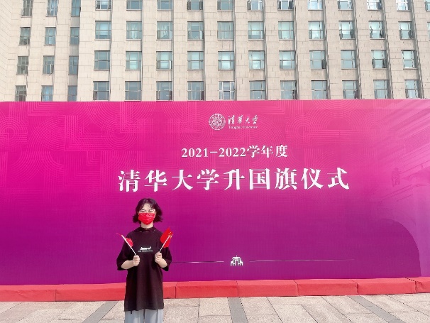 来自台湾的2019级马克思主义学院博士生蓝黎说:“在这新学期之初,冉冉升起的国旗和精神抖擞的仪仗队,给予我极大鼓励。生逢盛世,肩负重任,如同所有清华人一样,我将努力投身到研究和实践之中,期许自己也能成为‘五星红旗灿烂光华中淡淡的一笔’!”