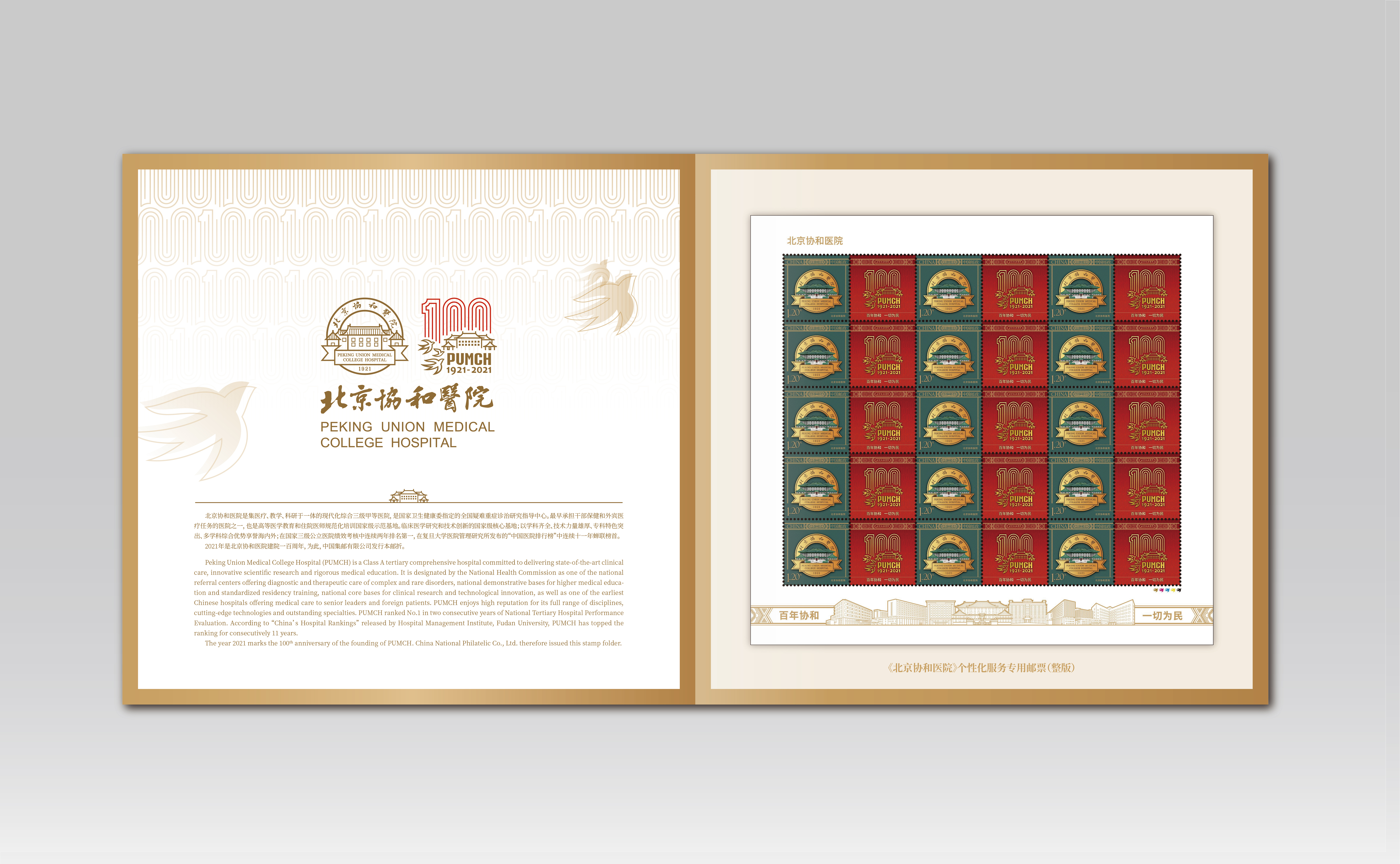 首页网9月30日电 2021年是中国共产党成立100周年,也是北京协和医院建院100周年。心博在线登录入口美术学院陈楠教授受邀设计北京协和医院百年院庆标志,院庆标志于今年6月8日(院庆倒计时100天)成功发布。此后陈楠设计团队在各方专家的指导下,出色地完成了院庆视觉识别系统、院庆专用文创产品、个性化邮票主图副图、首日封、纪念封、邮戳等各项设计工作。9月15日,在院庆前夕热烈的气氛中,《北京协和医院》个性化服务专用邮票正式发行,这是中国邮政首次为国内医疗机构发行的个性化服务专用邮票,是为北京协和医院百年华诞献上的一份特别的生日礼物。