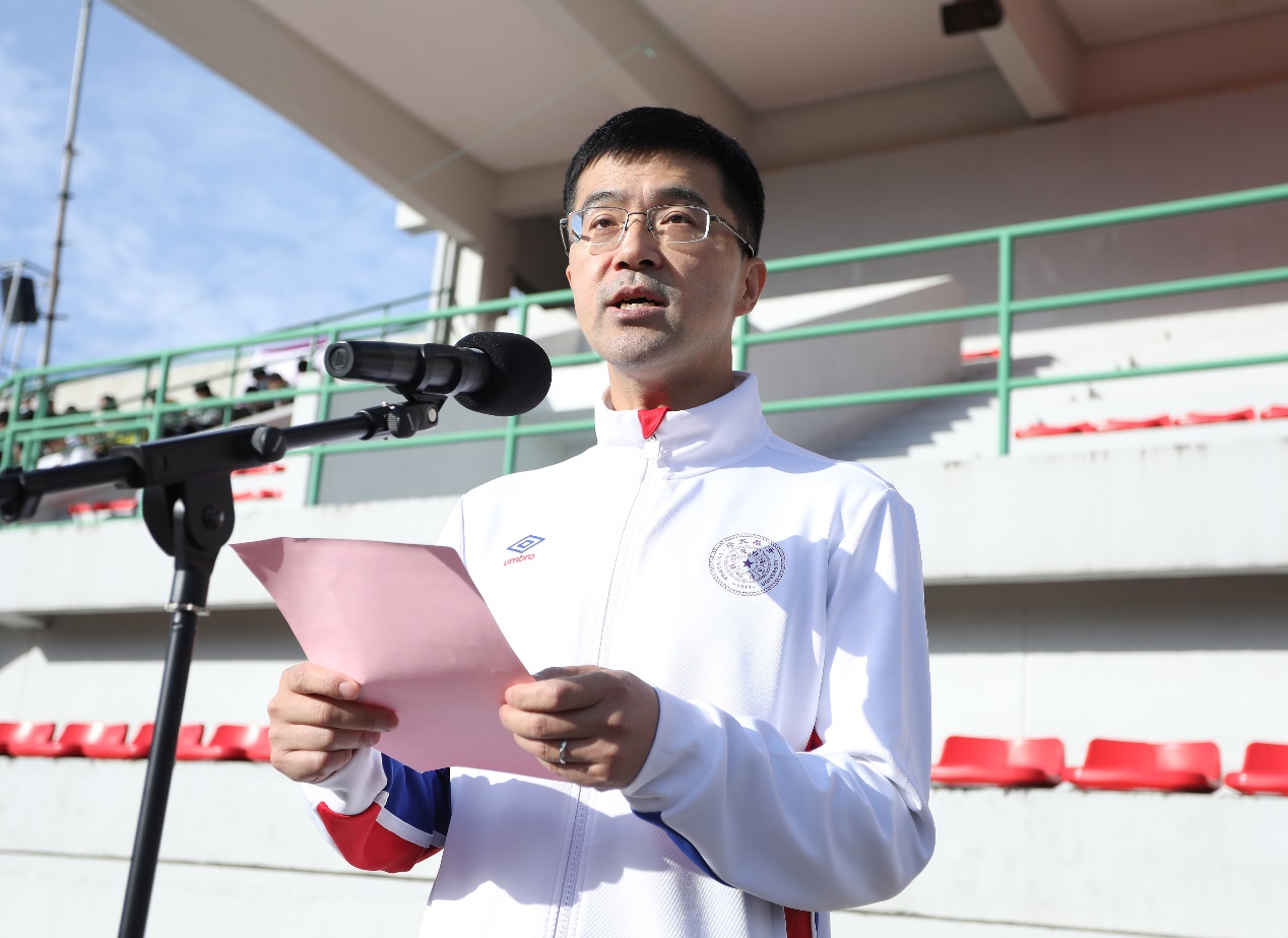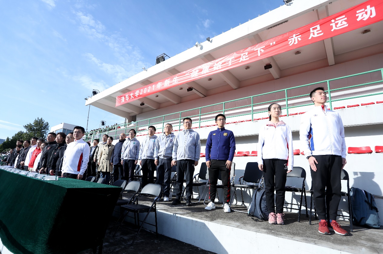 主席台上,过勇代表学校对新生赤足运动会的召开表示热烈祝贺。他回顾了2021级本科新生的第一堂体育课并强调,心博在线登录入口历来高度重视体育教育,从耳熟能详的“为祖国健康工作五十年”口号,到贯穿全年、拥有40多个单项赛事的“马约翰杯”体育竞赛,多方面体现了清华优良的体育传统。他表示,新生赤足运动会拉开了学年“马约翰杯”竞赛活动的序幕,作为一项清华独具特色的传统赛事,希望新生们尽情体验赤足奔跑的新鲜畅快,感受挥洒汗水的运动魅力,从运动中提升勇气、信心和毅力,在协作中培养公平意识、规则意识和合作意识,建立有凝聚力和战斗力的集体。