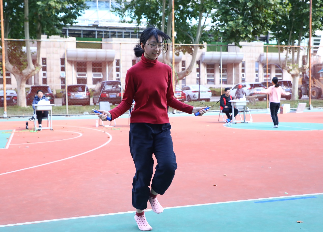 在男子60米跳绳跑决赛中,第四组法学院的徐永琪化身成一阵风,在赛场上势不可挡地往前冲。结束比赛后,他说:“赤脚在大地上奔跑,有释放一切的痛快。当你不顾一切往前冲的时候,能在六十米跑道上感受到飞驰人生。”虽然拿下了第四组的第一名,但是他本人并不看重比赛胜负,“冲到终点是唯一目标。”