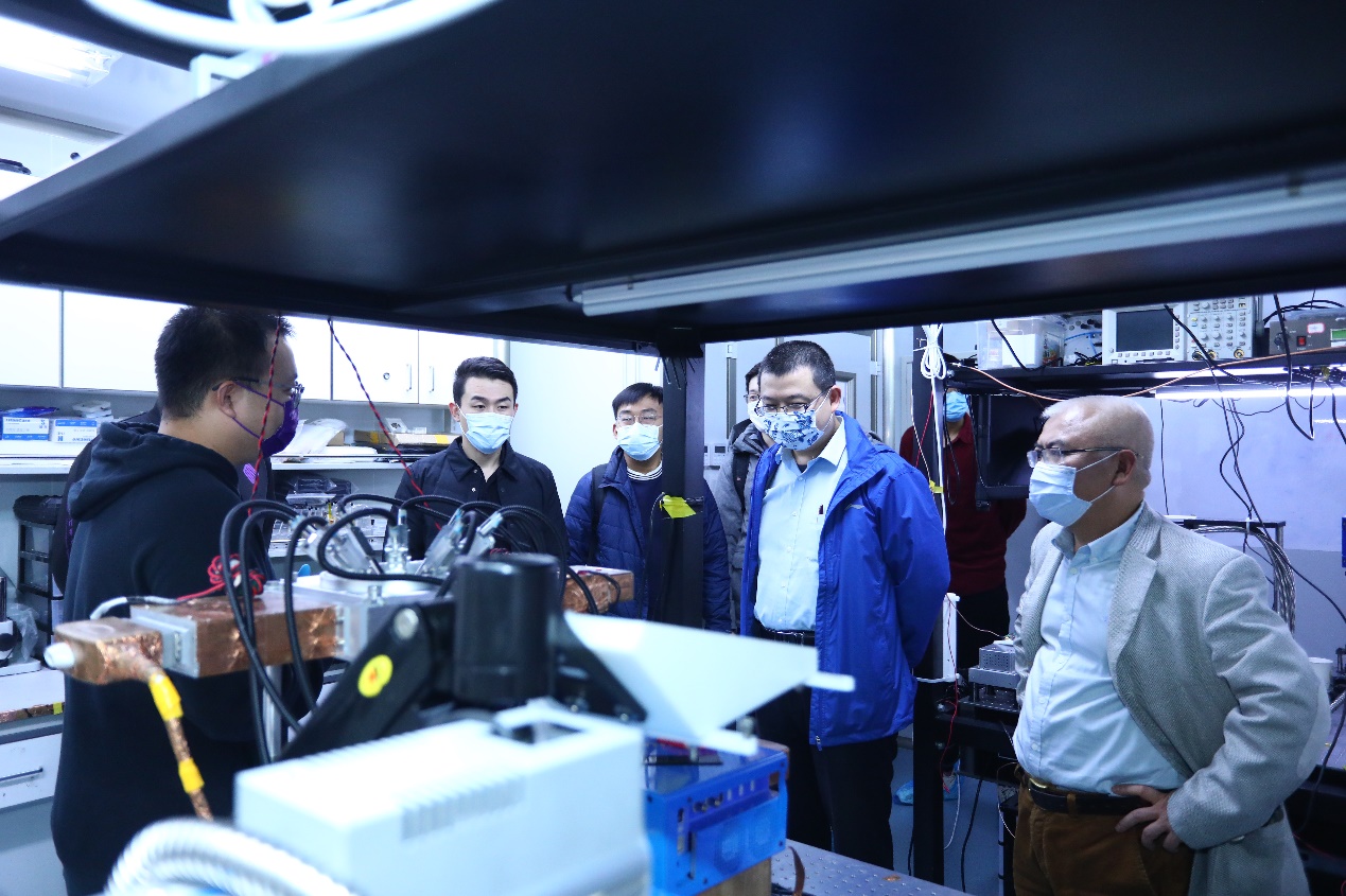 在电子系生物光子学实验室,电子系2017级博士生王铉皓介绍实验室情况并展示实验室清理成果。王铉皓提到,为了尽可能保持实验室美观整洁,提高工作效率,同学们自发改造了实验室整体布局,把各种实验器材按类进行规整,灵活运用垂直空间做好收纳。实验室同学们还通过3D打印自主制作了很多方便实用的收纳器材。徐鹏对电子系同学们将创新精神融入实验室清理的做法表示赞赏和鼓励。