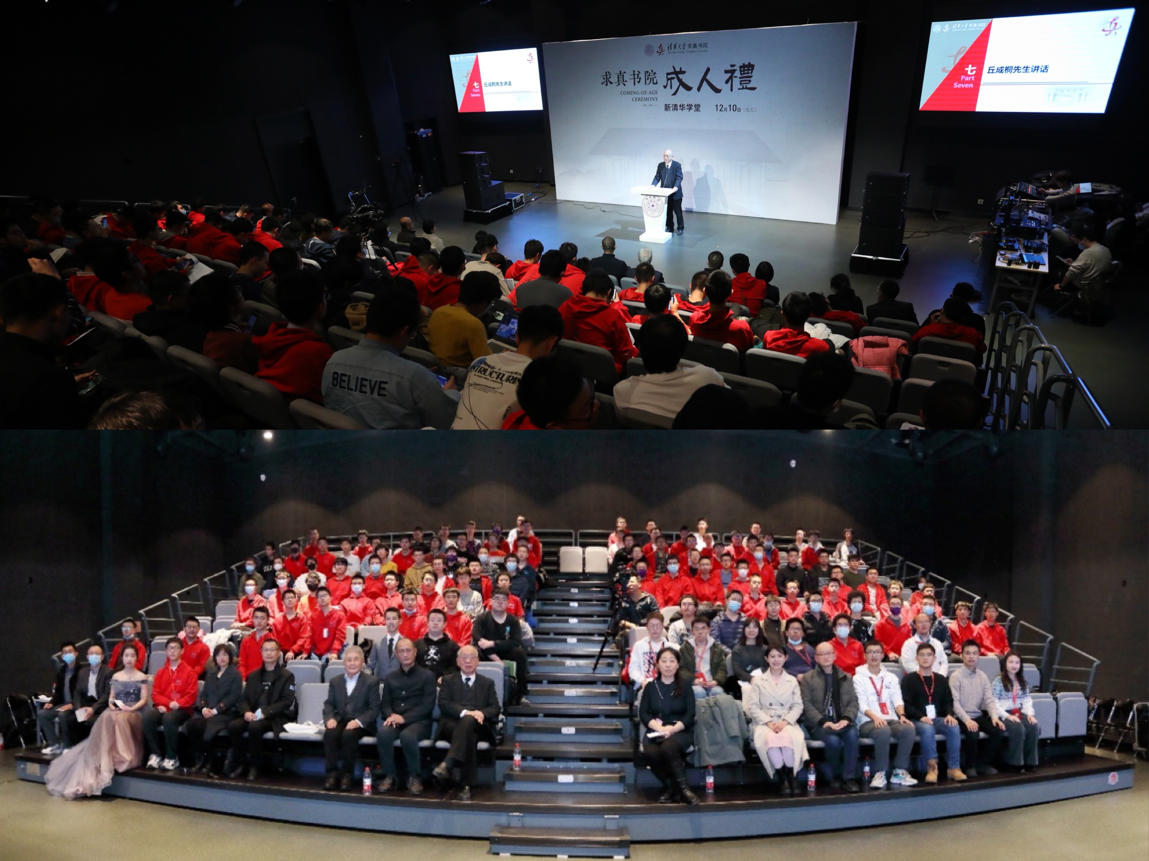 首页网12月15日电 12月10日下午,求真书院首届“成人礼”在新清华学堂实验剧场成功举行。求真书院院长丘成桐,中国工程院院士、机械系教授王玉明,中央美术学院教授邱志杰,书院管理中心主任苏芃、副主任朱德军,求真书院副院长、书院管理中心副主任王小芳,中国经学研究院副研究员张涛,以及求真书院益友学者、辅导员和全体大一学生参加活动。学生家长在线参与活动。