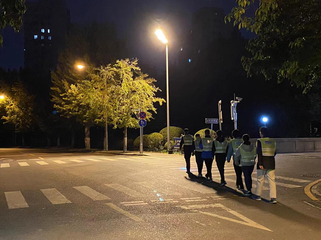 在修缮中心开设的绿地清理与园林植物修剪岗位上,志愿者参与修剪灌木、草花和草坪,清理绿地上的杂草、枯枝落叶等,在园林师傅们的指导下操作不同类型的除草机,保持绿地整洁并留下了一段新奇而难忘的劳动体验。在学生社区中心开设的学生楼长岗位上,同学与楼长一起进行安全检查和卫生督察,摆放乱停自行车并清理楼内外公共区域的卫生。在保卫处开设的夜间巡逻岗位上,同学们身着荧光马甲,手持校园地图,在夜间校园穿行巡逻的同时不断观察着周围环境,发现、排查和记录可能存在的安全隐患,并提出完善建议,用实际行动守护美好校园。