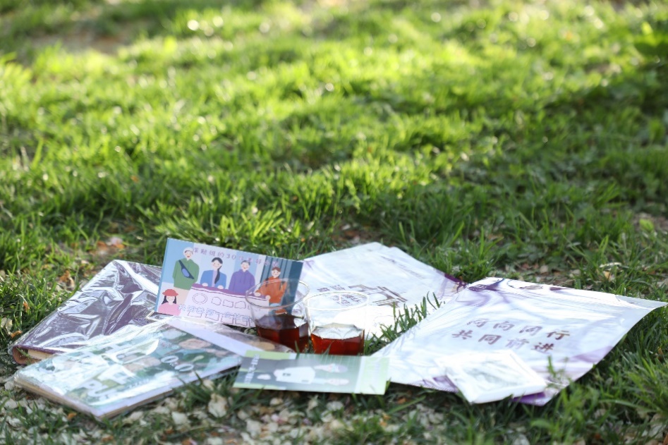 下午两点,赏花春日游活动正式开始。参与活动的师生陆续前来,在牡丹园处领取明信片和游览手册后,开始了属于他们的赏花春游之旅。赏花春日游活动的路线以牡丹园为起点,理学院下沉广场为终点,在自清亭、静斋、绿园以及天文台东侧设置打卡点。前来参与的师生在各个打卡点观赏春日清华的美景,在展板前合影留念,参与打卡点设置的互动小游戏,并为自己的明信片盖章。