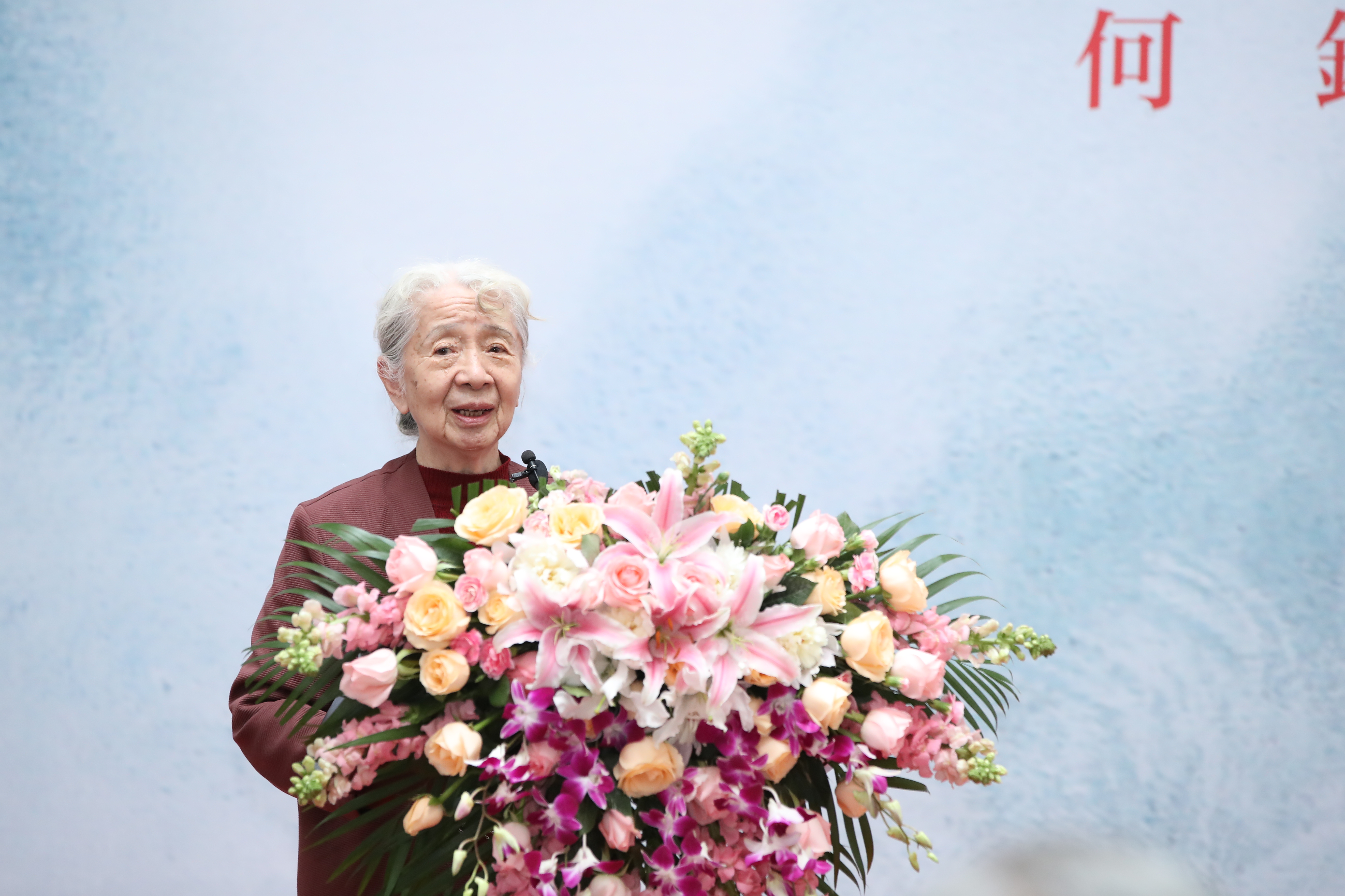 常沙娜、美术学院院长鲁晓波、美术学院环境系主任宋立民、北京清尚建筑设计研究院董事长吴晞、中国室内装饰协会会长张丽,国馆宝藏艺术机构董事长徐丽珩,以及何镇强先生长子何山分别致辞。王明旨宣布展览开幕。