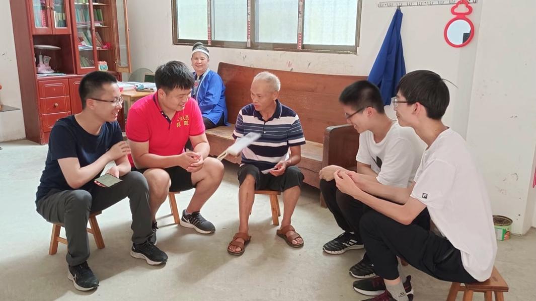 支教成员与驻村工作队在滚良村退休老教师家中访谈