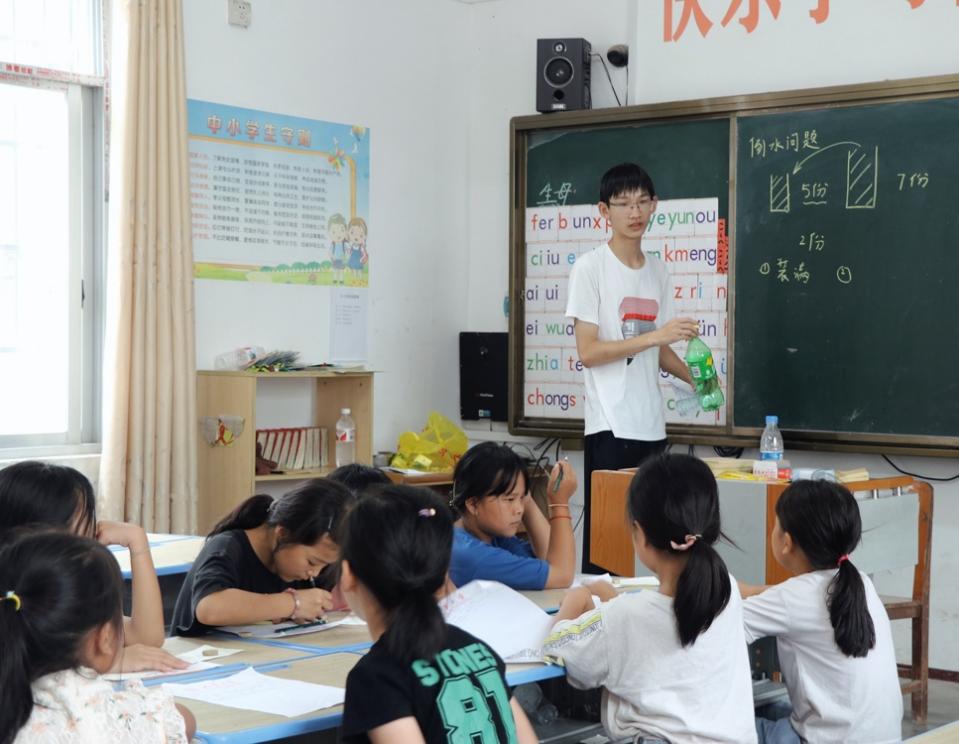 支队成员在为滚良小学的同学们讲授数学课